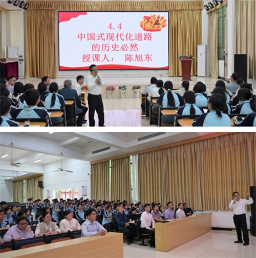 陈旭东书记在学校报告厅为二中师生带来一堂立意深远的思政课,他以“中国式现代化的历史必然性”这一时代命题,从中国古代GDP和人口数量的阶段性变动数据,并列举近代历史上,欧美国家为维持自身霸权地位,常对新兴大国采取阻拦措施具体案例,展现了中国式现代化的历史必然性。以大历史观打开崭新叙事,运用中华文明史展示中华优秀传统文化底蕴,运用中国共产党人接续奋斗的历史展现社会进步的壮阔征程,在史实钩沉中增强学生的历史自觉与时代使命感,进一步增强了师生的文化自信与使命担当,引发了强烈的共鸣与深刻思考。
